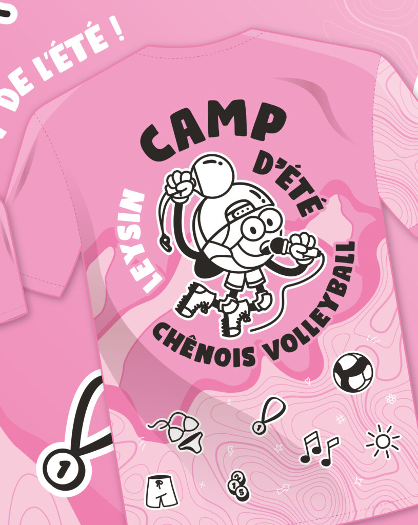 Pour cette nouvelle édition, le club souhaitait offrir un maillot unique à leurs jeunes volleyeurs du camp, aux couleurs du club. Et afin d’aller encore plus loin, nous avons créé un logo dédié utilisable sur tous les autres supports.